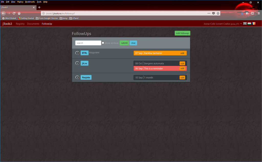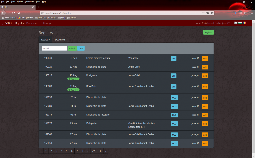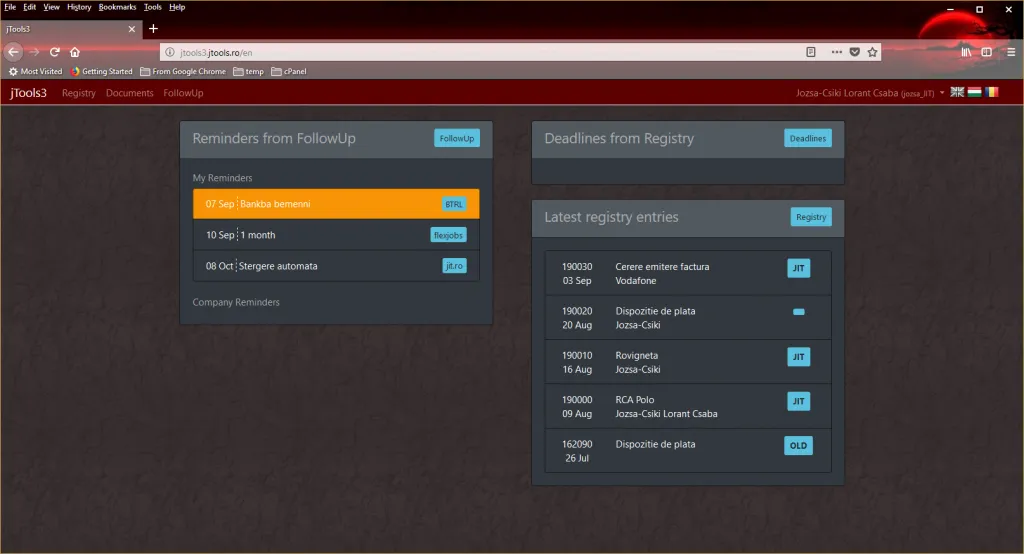 The jTools project is a mini-ERP tailor-made for small businesses. A project follow-up module is combined with a registry and document management component.